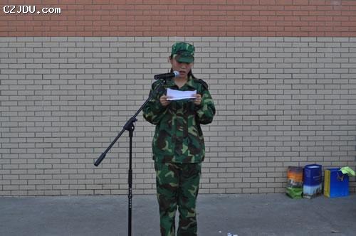 軍訓(xùn)代表新生數(shù)控4班的陳志新發(fā)言。她向全體受訓(xùn)學(xué)員表示,在今后的學(xué)習(xí)和生活中,一定嚴(yán)格按照軍人的標(biāo)準(zhǔn)要求自己,努力學(xué)習(xí)科學(xué)文化知識(shí),為社會(huì)貢獻(xiàn)自己的力量。