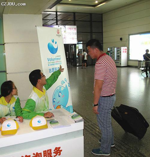 “小水滴”們正在為車站旅客導(dǎo)乘