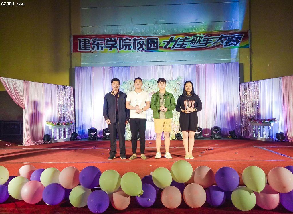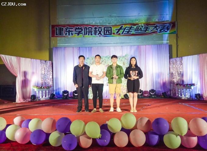 建筑系團(tuán)總支書記董樂樂、電子系團(tuán)總支書記孫文霞為十佳歌手頒獎(jiǎng)