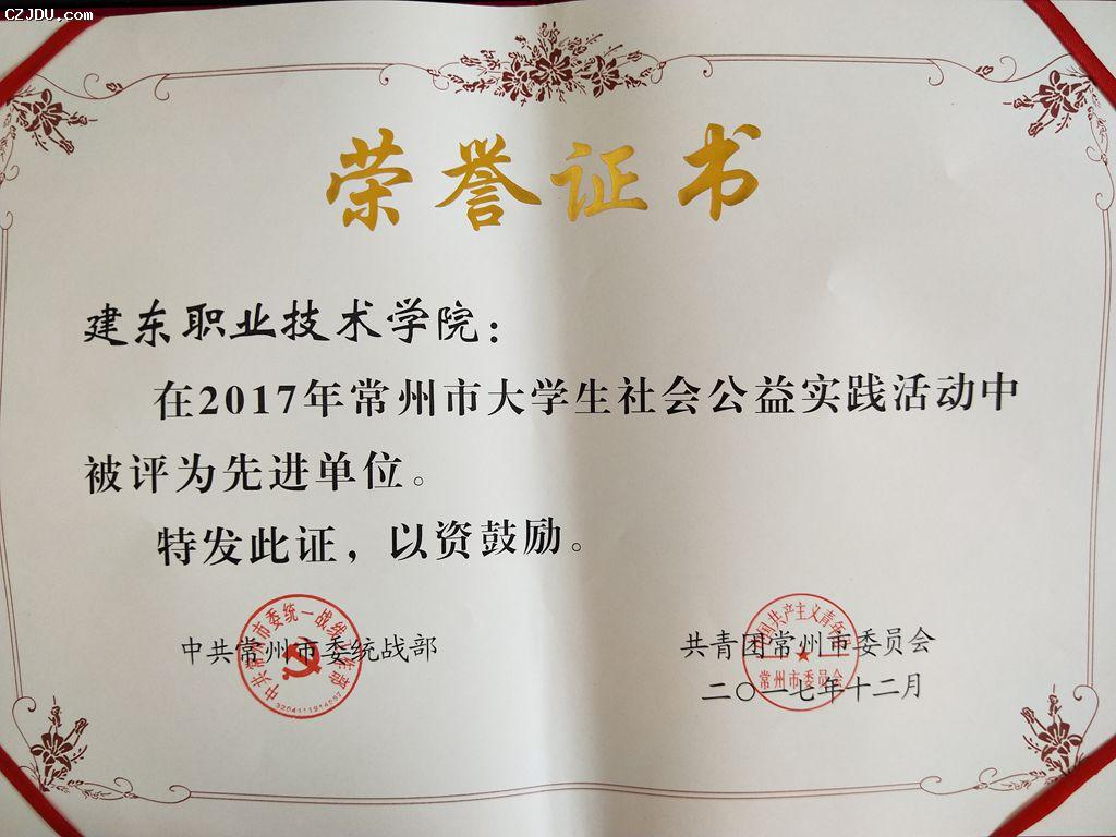近日,收到中共常州市委統(tǒng)戰(zhàn)部與共青團常州市委聯(lián)合發(fā)文《關(guān)于表彰2017年常州市大學生社會公益實踐活動暨“唐鶴千龍城大學生同心實踐基金”第五期先進單位、先進工作者、先進個人和先進團隊的決定》,我院被評為“唐鶴千龍城大學生同心實踐基金”第五期先進單位。