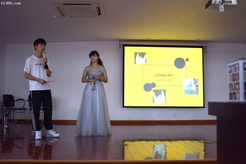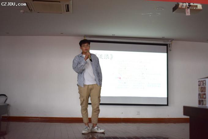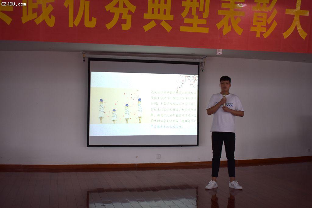 緊接著,“團(tuán)隊(duì)之星” 的四名同學(xué):施冠毅、張加樂(lè)、施漢春以及羌均鈺以“TEAM”命名,給大家展示了作為一個(gè)團(tuán)隊(duì),成功的重要因素有哪些。施冠毅同學(xué)用自己在學(xué)生會(huì)工作的兩年多經(jīng)驗(yàn)給大家講述了信任的重要性;張加樂(lè)同學(xué)用一首動(dòng)人的歌曲《流浪》給大家演繹了熱情的重要性;施漢春同學(xué)向現(xiàn)場(chǎng)觀眾講述了自己在文化社、校媒的經(jīng)歷和感悟,強(qiáng)調(diào)了堅(jiān)持的重要性;羌均鈺同學(xué)借助幾位新生的現(xiàn)場(chǎng)籃球表演向大家展示了合作的重要性。