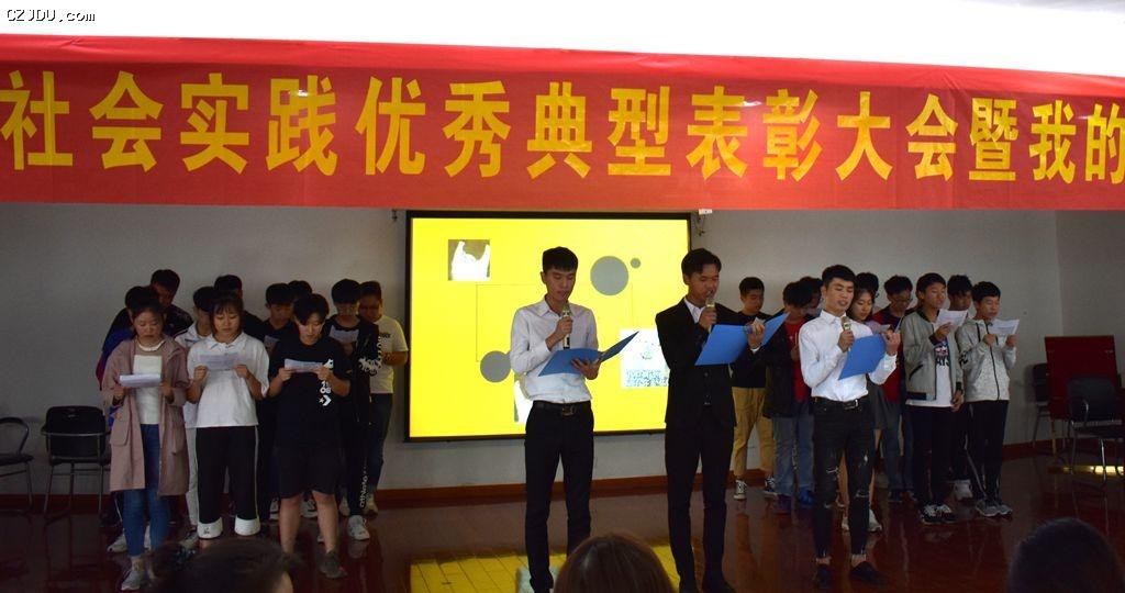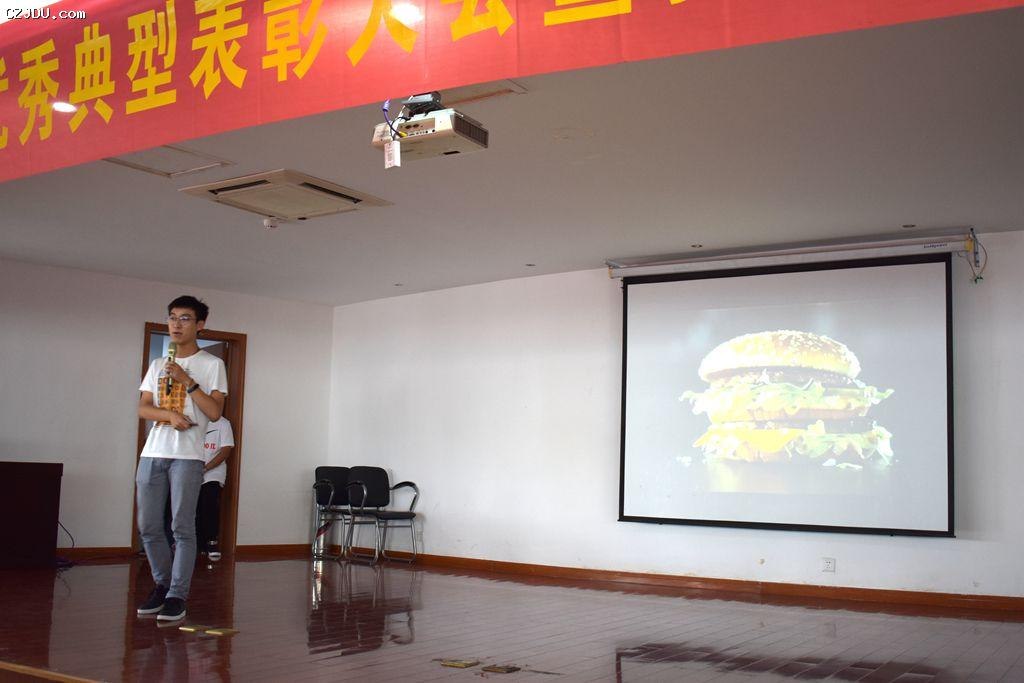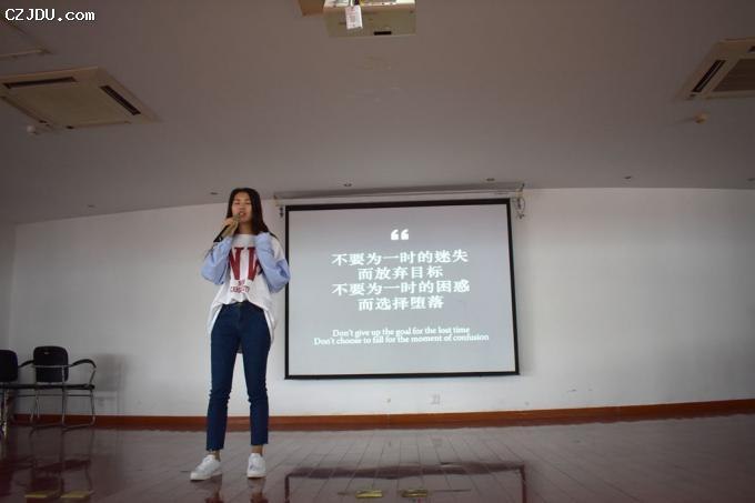 最后,“自強(qiáng)之星”的四名同學(xué):沈鴻飛、張洪順、曹士林與錢逸軒首先用演講結(jié)合PPT演示的形式向同學(xué)們展示了他們?cè)谛赡甓鄷r(shí)間內(nèi),在學(xué)習(xí)、生活、工作等各方面成長(zhǎng)的過(guò)程中如何克服挫折、自立自強(qiáng)從而收獲成績(jī)。然后,用一首《少年中國(guó)說(shuō)》的激情演繹鼓舞全場(chǎng)所有新生,少年需自強(qiáng)。