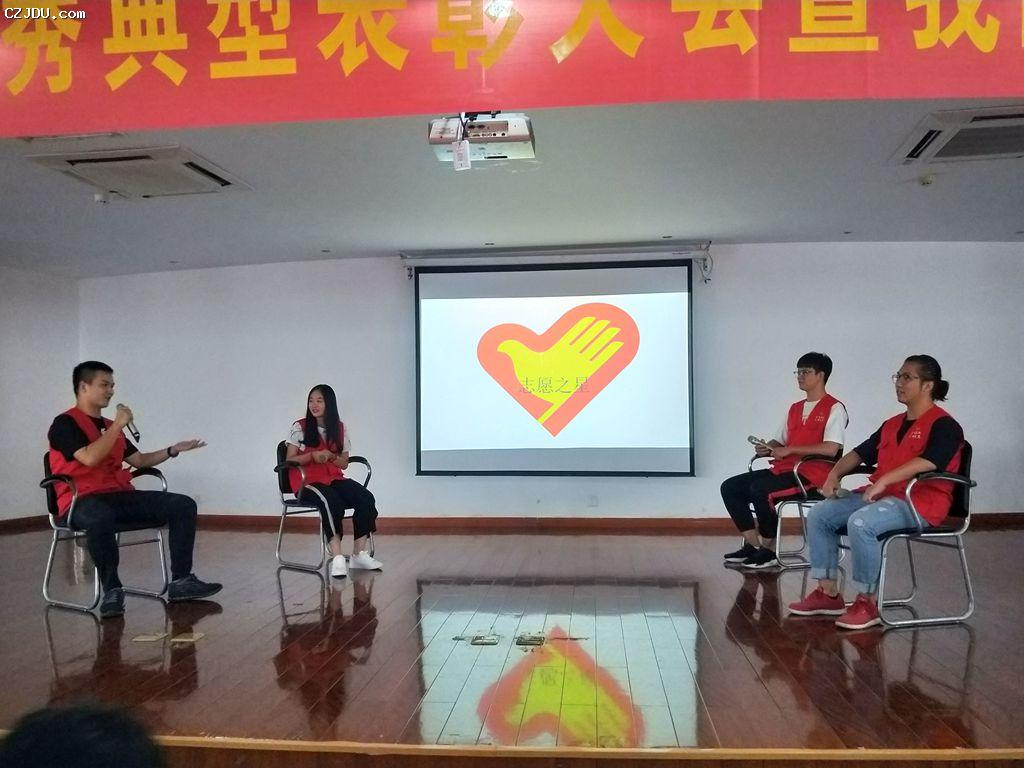 隨后,徐子皓、王京豫、曾一峰與劉穎四位同學(xué)作為“志愿之星”給大家講述了各自在志愿者服務(wù)的過(guò)程中遇到的故事,他們?cè)诔V菔袣垔W會(huì)擔(dān)任志愿者,幫助各位殘疾人運(yùn)動(dòng)員完成比賽;他們?cè)谘籽紫娜眨檬罴傩菹r(shí)間走進(jìn)徐州市蔣溝村,關(guān)心當(dāng)?shù)氐牧羰貎和?;他們?cè)谌粘I险n的周末與假期,走進(jìn)老人院、走進(jìn)幼兒園,關(guān)愛(ài)老人,幫扶弱小。他們用他們的實(shí)際行動(dòng)向大家展示了志愿者“奉獻(xiàn)、友愛(ài)、互助、進(jìn)步”的八字精神。